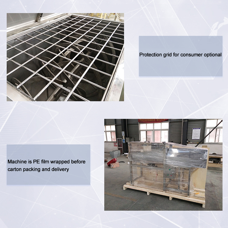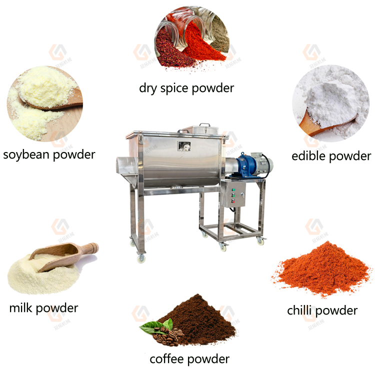 This is ribbon blender powder mixer machine, suit for mixing dry powder item like milk powder, dry spice powder, seasoning powder, fertilizer powder, protein powder etc; it can be widely used in food, chemical and other industries.machine is stainless steel and comply to food safety grade,it is easy to operate.